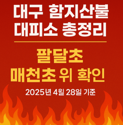 현재 대구 함지산불은 계속 확산 중입니다. 안전이 최우선이며, 당국의 지시에 따라 대구 함지산불 대피소로 신속히 이동해 주세요. 모두 무사히 지나가길 바랍니다.