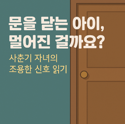 사춘기 자녀가 방문을 닫는 것은 ‘부모와 멀어지고 싶다’는 표현이 아니라 ‘내 감정을 잘 모르겠어요’라는 도움 요청일 수 있습니다. 부모는 문을 억지로 열기보다는 문밖에서 조용히 기다리는 사람이 되어야 합니다.